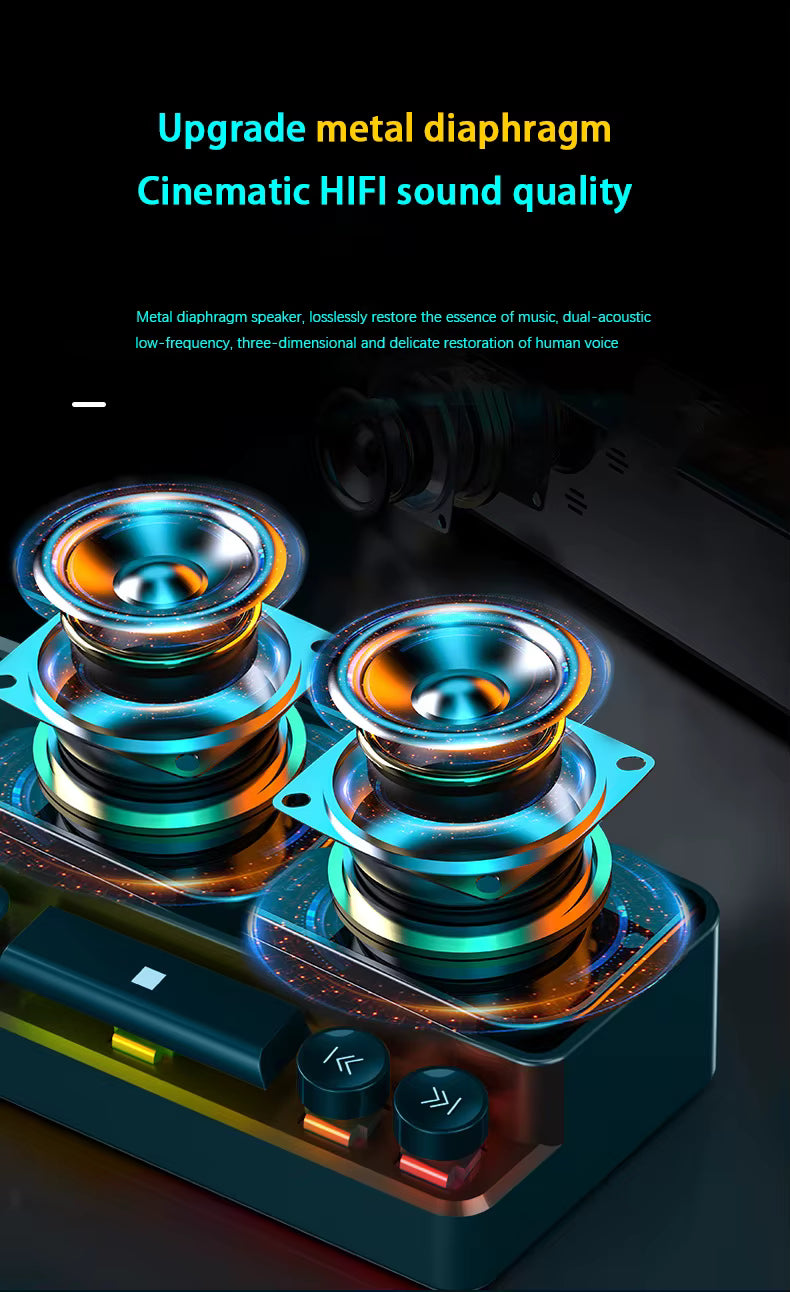 - Immersive HIFI Audio: Full-range speakers with metal diaphragm for rich, cinematic sound