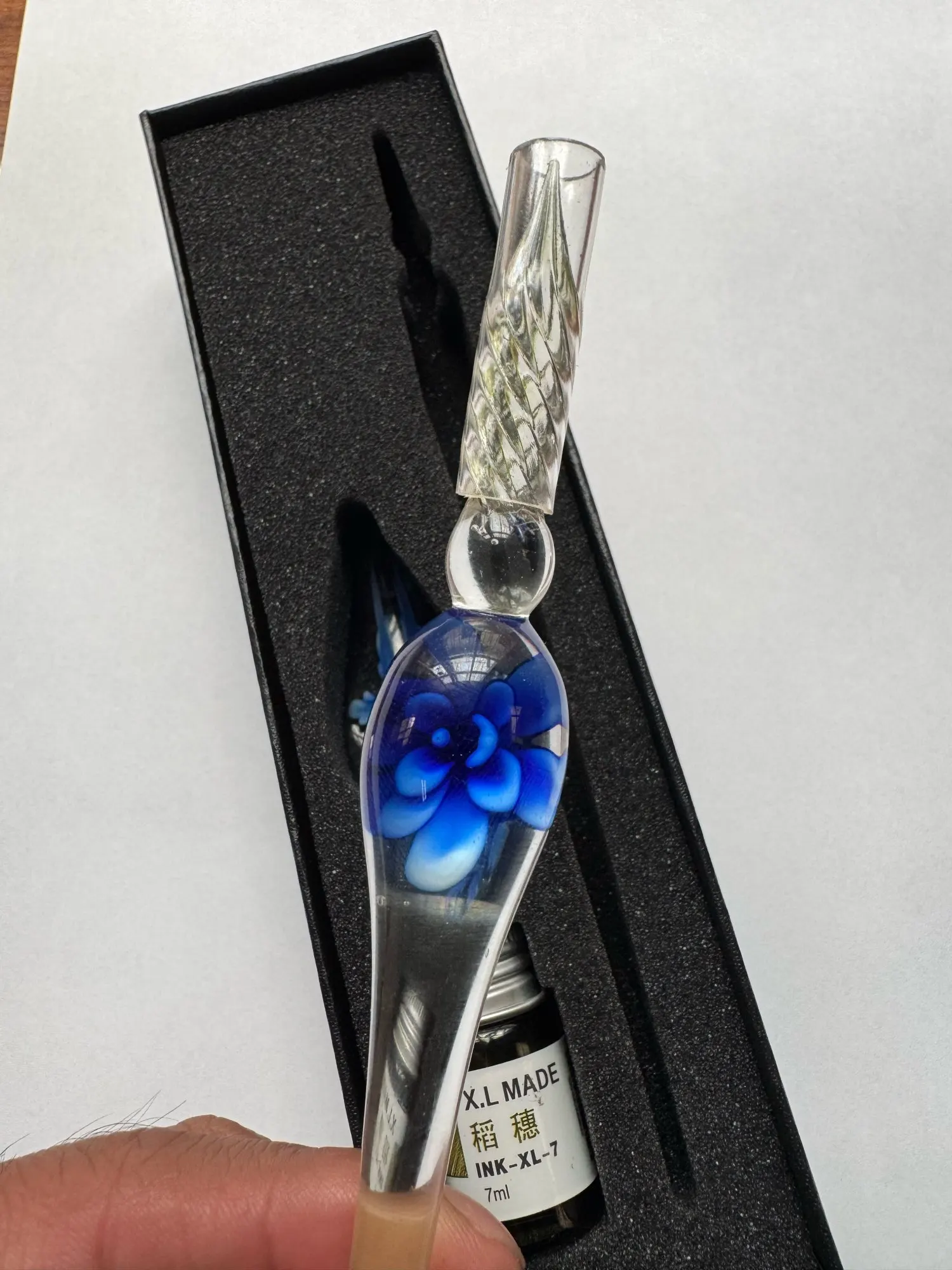 Crystal Glass Dip Pen | Floral Embedded Design | Threaded Nib for Smooth Writing