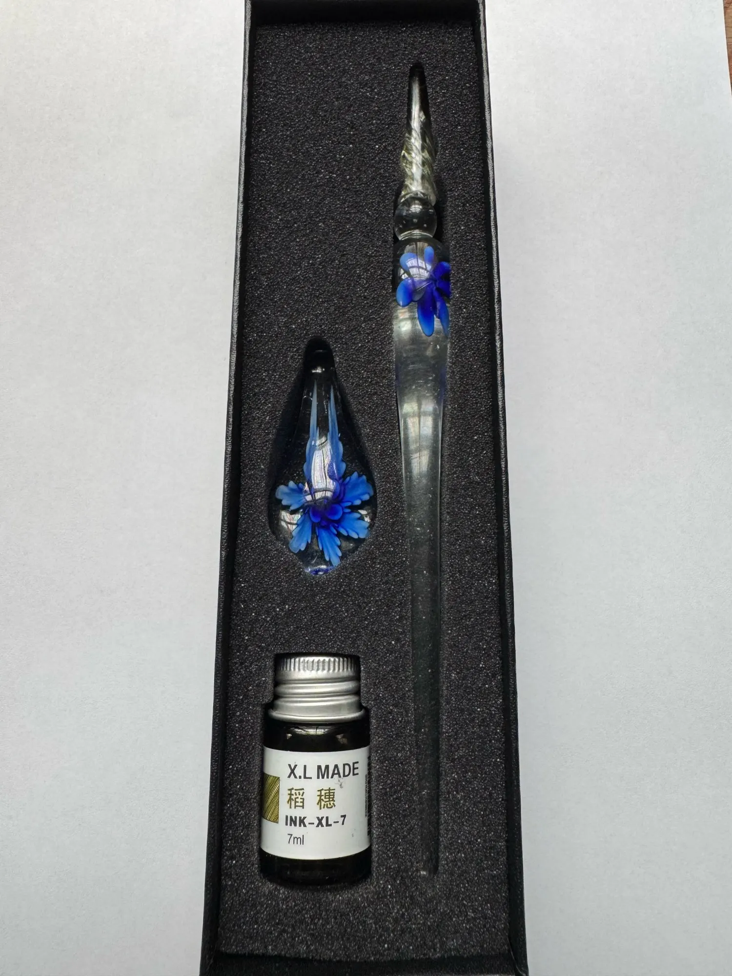 - Exquisite Handcrafted Design: Made from premium crystal glass with delicately embedded floral patterns, accompanied by a beautifully decorated ink bottle