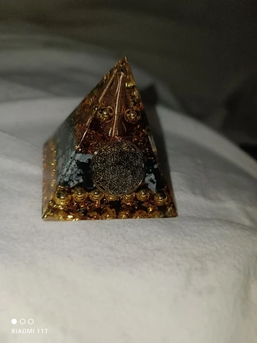 Discover the power of positive energy with this handmade orgone pyramid. Meticulously crafted from resin, copper powder, and natural stones, it serves as a powerful energy generator to harmonize your space. Perfect for home decor, Feng Shui enhancement, and protection against electronic emissions.