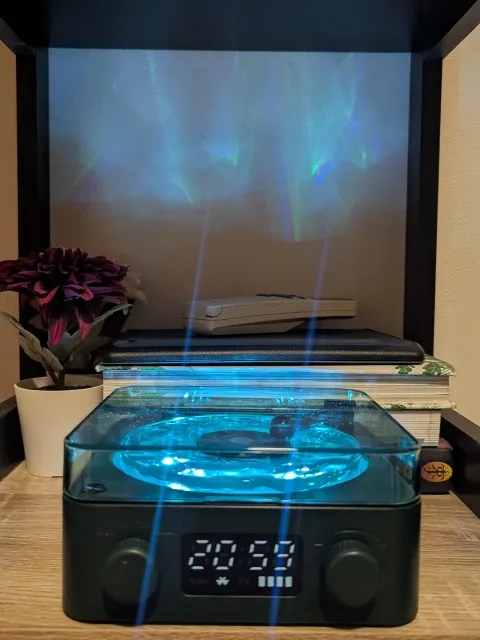 - Mesmerizing Visual Display : Features a transparent water ripple turntable that rotates with your music, creating beautiful ambient lighting that can be tapped to wake or set to sleep mode